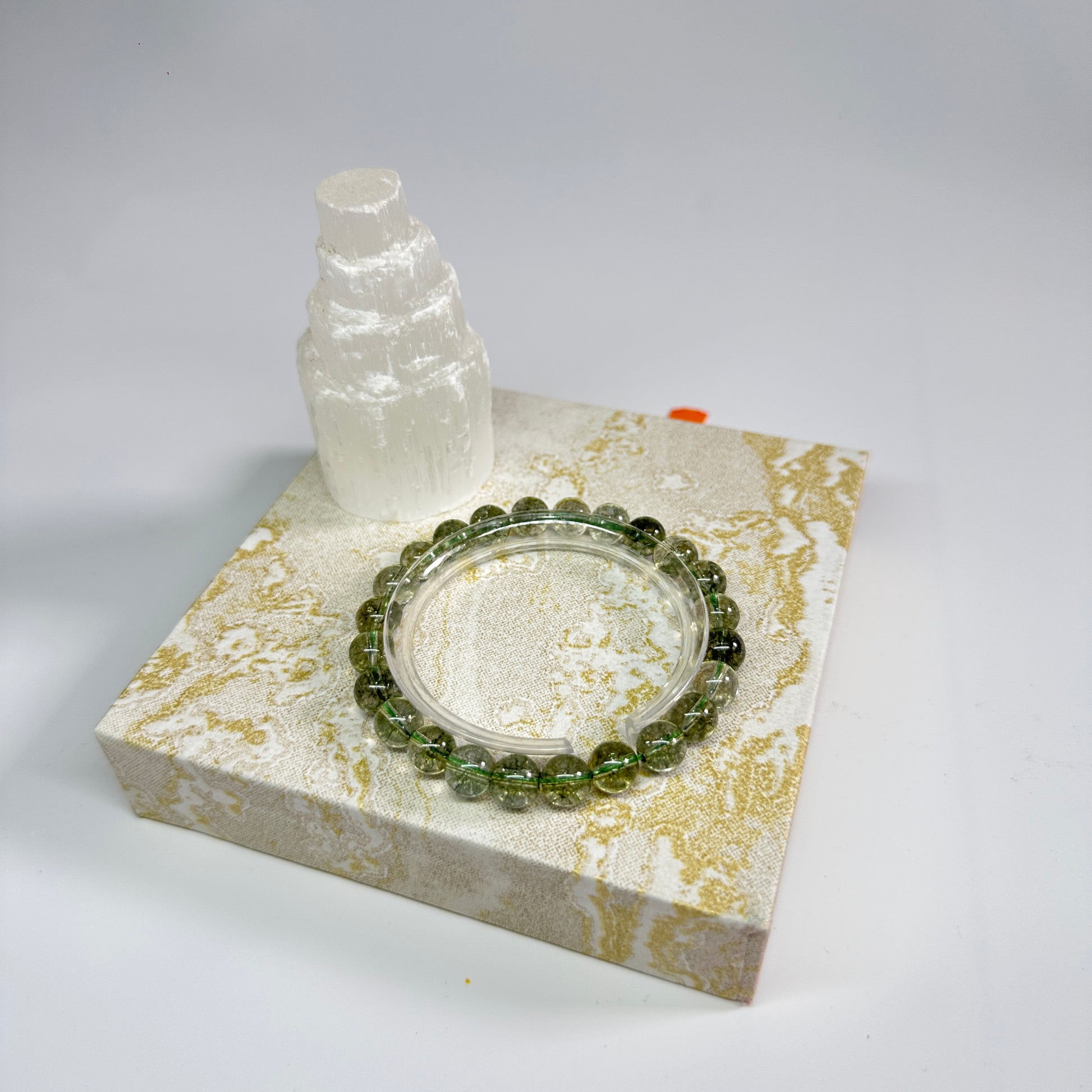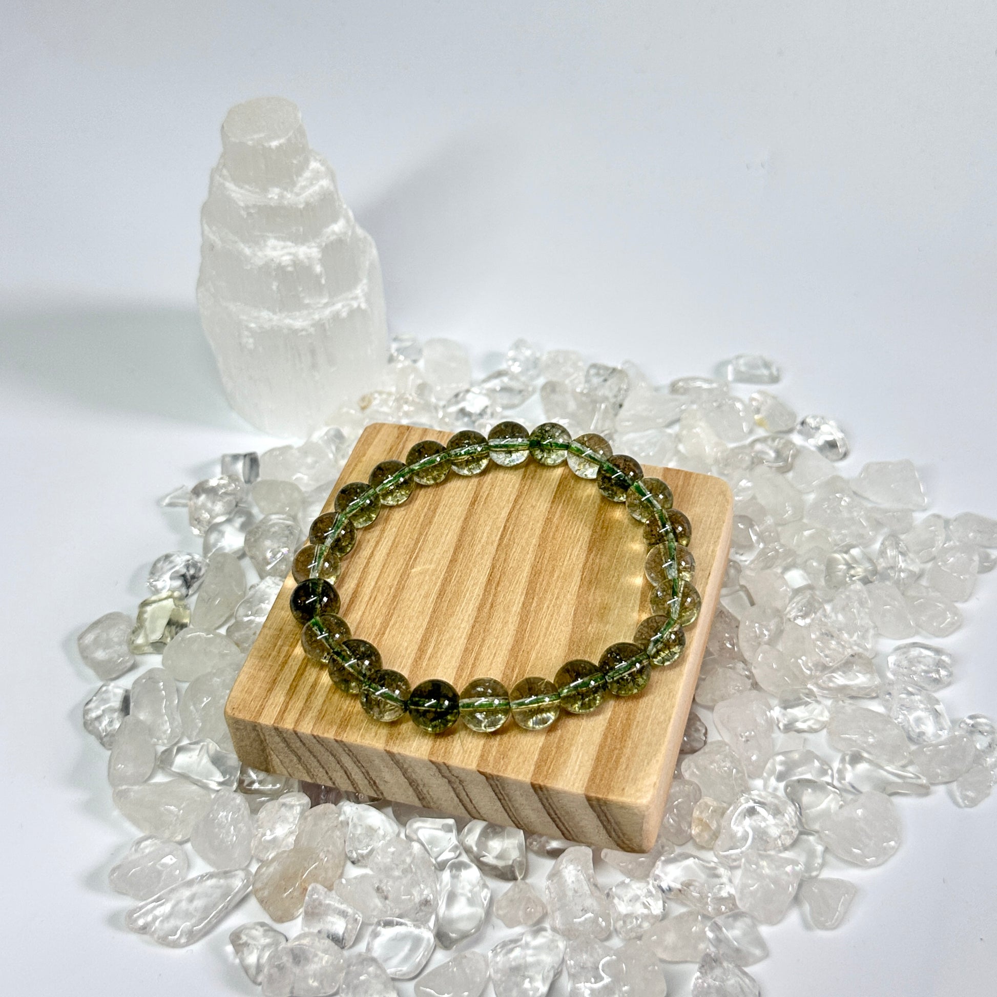 Each bracelet is handmade with genuine Brazilian Green Ghost Phantom beads, showcasing natural phantom inclusions. Every piece is cleansed, charged, and blessed before shipping, making it a rare and powerful companion for transformation and abundance.